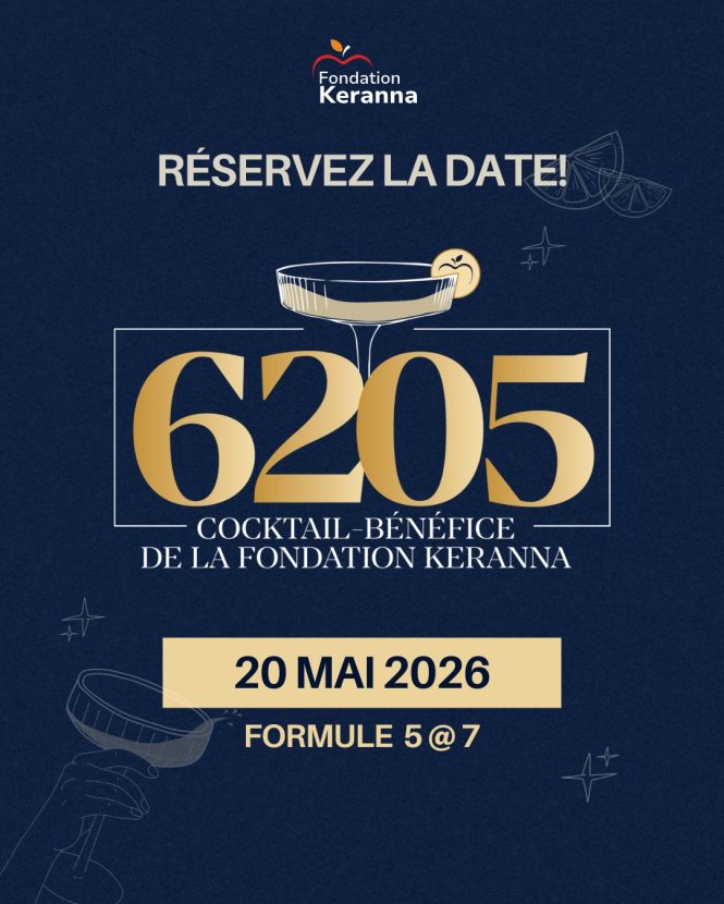 La Fondation Keranna est fière de lancer son tout nouvel événement annuel : Le 6205, un cocktail-bénéfice qui réunira la grande communauté Keranna dans une ambiance festive, chic et conviviale.